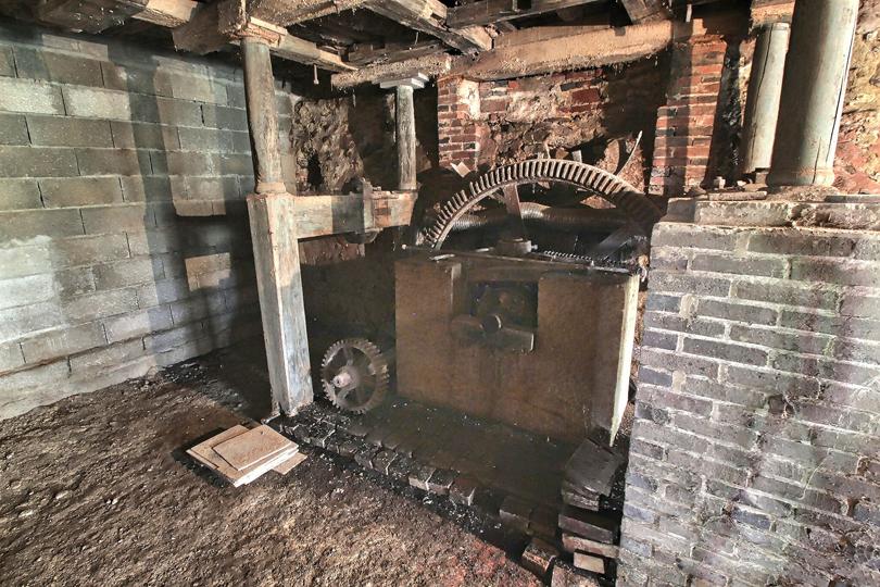 Pièce intégrant une partie de l’ancien mécanisme du moulin |